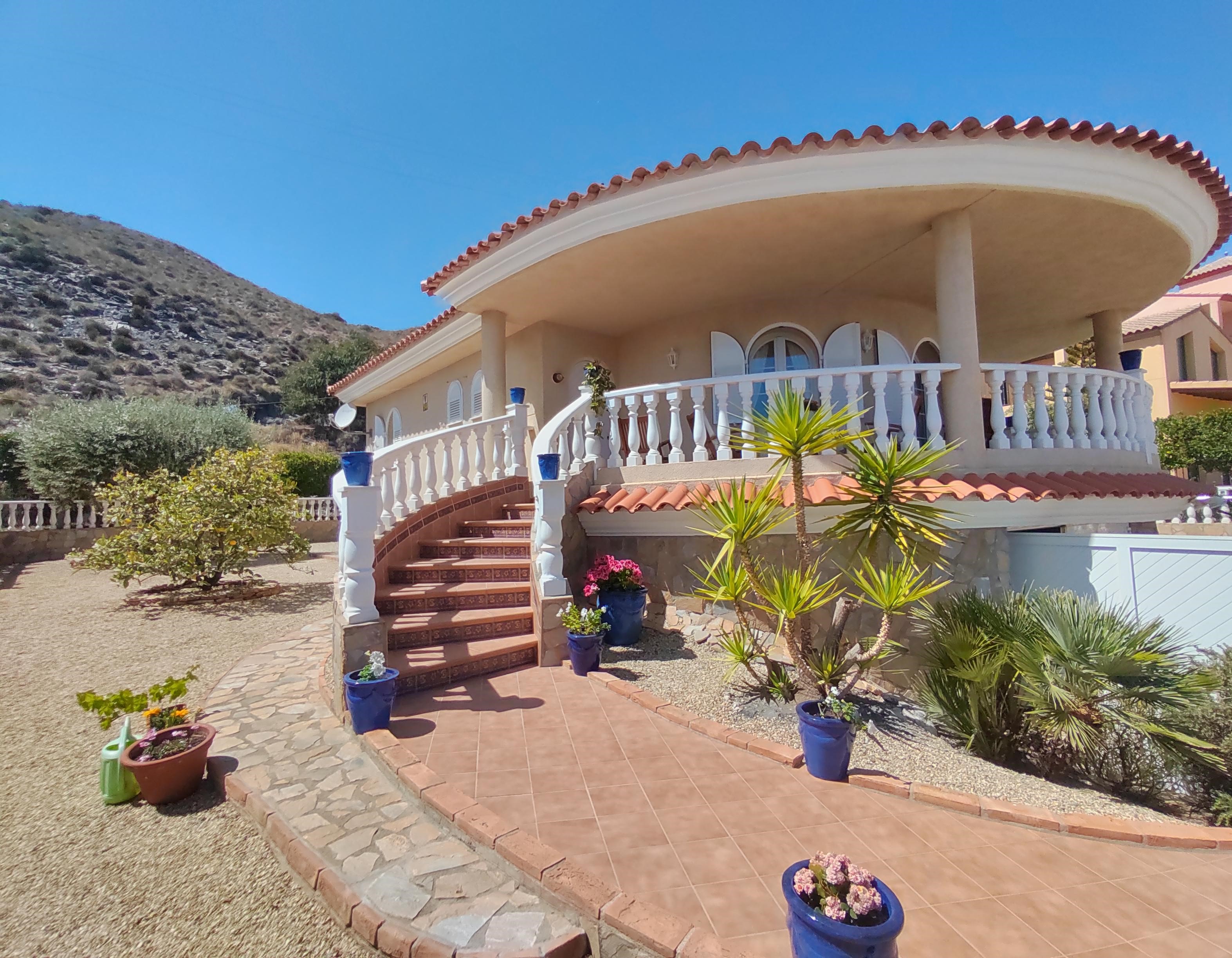 Freistehendes Haus mit überdachtem Pool und einem Apartment auf einem Grundstück von ca. 800 m2 in Calabardina, Aguilas. Das zweistöckige Haus hat eine bebaute Fläche von ca. 334 m2 ist im EG aufgeteilt in einen Eingangsbereich, W... [...]