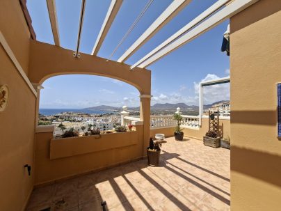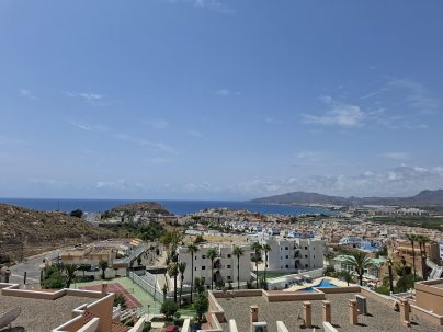 Terrace apartment with stunning sea and panoramic views in the Beverly Hills Residence, San Juan de los Terreros, Andalusia The apartment has a living area of 98.46 m² and includes a private garage with access to the elevator. From there, the elevator takes you directly to the apartment’s entrance. Upon arrival, you reach a private terrace with the apartment’s front door. The living area comprises an open-plan, very bright living/dining area with an integrated, fully equipped kitchen. Two large French doors open onto the front terrace. A small hallway leads to the two bedrooms, each with access to the terrace or patio, built-in wardrobes, and direct access to its own bathroom. The master bedroom bathroom has a shower and toilet, while the guest bedroom bathroom features a bathtub, toilet, and washing machine. The apartment is being sold furnished. All windows are equipped with roller shutters. Central air conditioning is pre-wired and can be installed at any time. Electric radiators are provided for cooler winter evenings. A storage room within the apartment provides ample storage space. Several awnings have been installed on the terrace for shade. The apartment is located in one of the most beautiful and well-maintained complexes in the area, where a communal pool offers a refreshing respite during the hot summer months. There is also a private tennis court. The complex is just minutes from the nearest beaches of San Juan de los Terreros. The building’s photovoltaic system has been upgraded to supply electricity to the common areas. In San Juan de los Terreros, you will find all the amenities for daily life, such as shops, bars, restaurants, a medical center, pharmacies, a gas station, and more. Aguilas, Pulpi, and Vera are also nearby, offering a wide range of additional shopping, bar, and restaurant options. For golf enthusiasts, the Aguilon Golf Course is just a short drive away. |